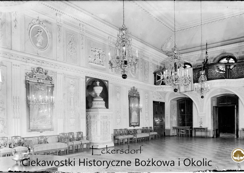 Zdjęcia z 1933 roku przedstawiające pomieszczenia z pałacu w Bożkowie.