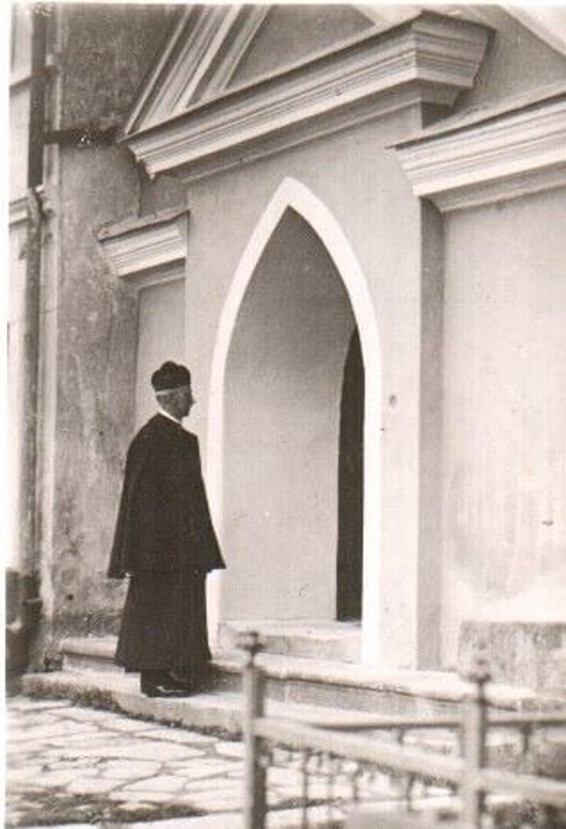 Rok 1932 - ks. proboszcz Robert Klein - przed kaplica św. Łazarza w Wambierzyce [ zdjęcie ze strony publicznej ]