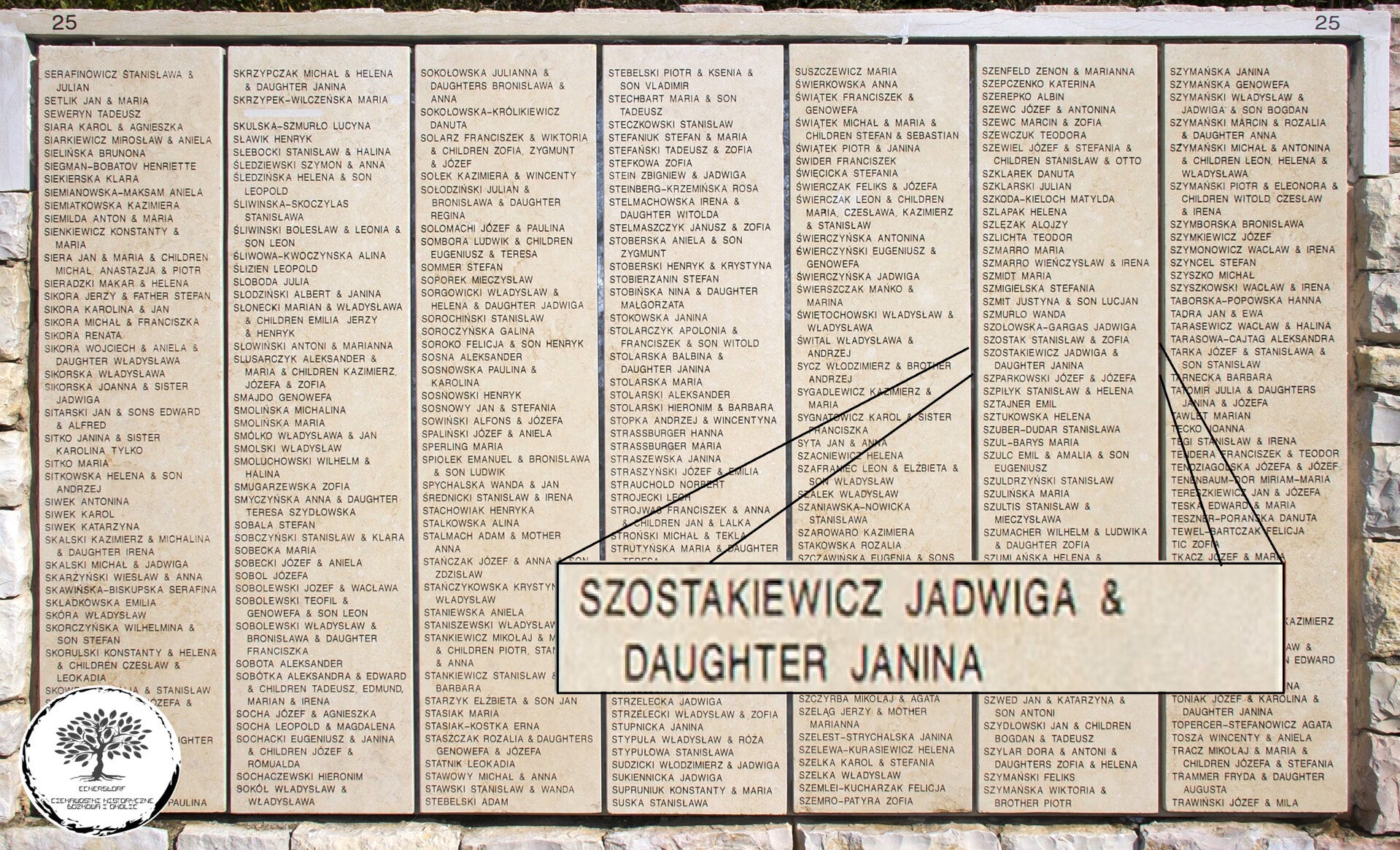 Na tablicy nr. 25 umieszczone są p. Jadwiga i Janina Szostakiewicz.