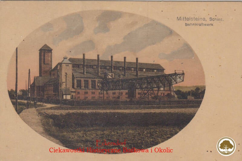 Pocztówka przedstawiające elektrownię w Ścinawce Średniej.